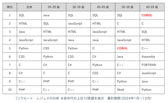 実際に、株式会社リクルートが発表した調査では、50代・60代エンジニアが保有するプログラミング言語の上位にCOBOLがランクインしており、他世代との差別化が図れるスキルとして注目されています。