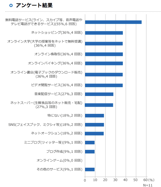 シニア層への需要が見込まれる音楽配信アプリですが、シニアからの具体的なニーズを紹介しましょう。総務省のアンケートによると「使ってみたいけど、難しくて使えなさそう」と感じているサービスの8位に音楽配信サービスがあり、シニアからの期待がうかがえます。